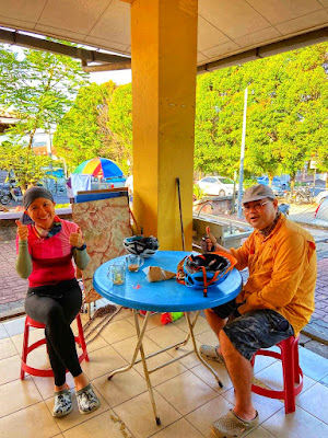 This morning, Amy and VT were one of the firsts to be out of their rooms. Both were given the assignments to check on their tyres which unfortunately ran flat only 9 km to Kulim, yesterday.