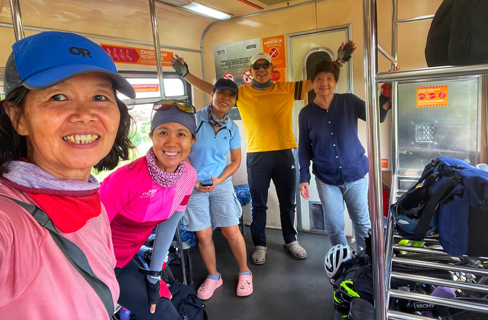 | After breakfast, we went to the railway station to secure our train tickets for Butterworth. May is pointing to KTM's notice on "bicycle on board" policy. The RM2 charge for bicycles are waived to promote a healthy lifestyle. Meanwhile, foldable bicycles are allowed on all KTM commuters at all times except from Butterworth to Padang Besar. However, there are some time restrictions for full sized bikes during the weekdays. |