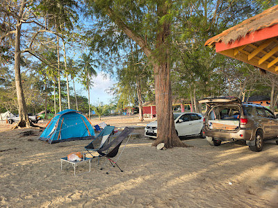| Night time at Chalet D'Arked Punggai's campsite. Rate is RM20 for a tent plot and an additional RM5 per car |